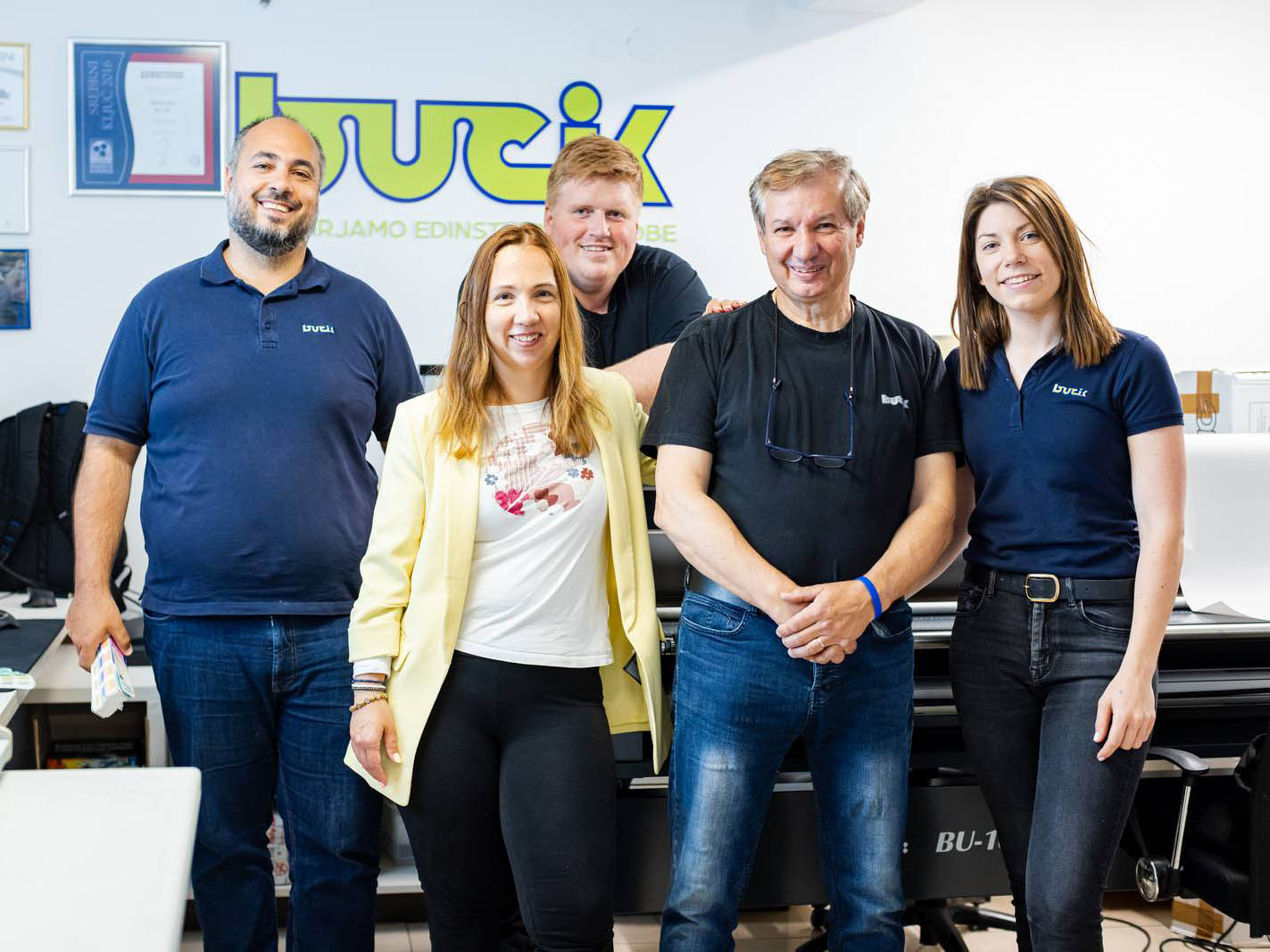 Zavezani k iskanju novih rešitev smo leta 2008 med prvimi v Sloveniji uvedli produkcijski digitalni tisk, razširili dejavnost v širokoformatni tisk ter vključili storitve na področju računalniške opreme. Takrat se je podjetju pridružil tudi sin Simon Bucik, ki je prevzel vodenje grafičnega studia.